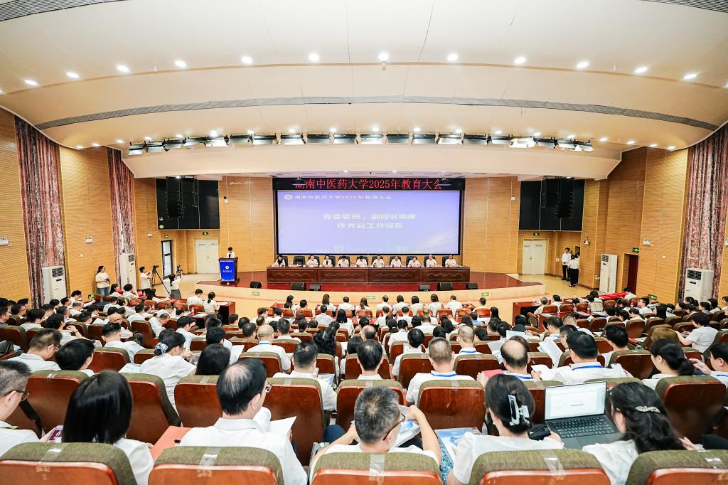 金秋时节,杏林芬芳。9月10日上午,时值第41个教师节,我校2025年教育大会在庄严的国歌声中隆重开幕,大会主题为“立德树人守初心,创新发展担使命——全面推进新时代人才培养高质量发展”。校党委书记戴爱国作总结讲话,校长易刚强主持会议,全体校领导、党委委员,副处级以上干部,受表彰对象、校教学督导团代表、专业负责人,各附属医院及研究生培养单位负责人等共280余人参加会议